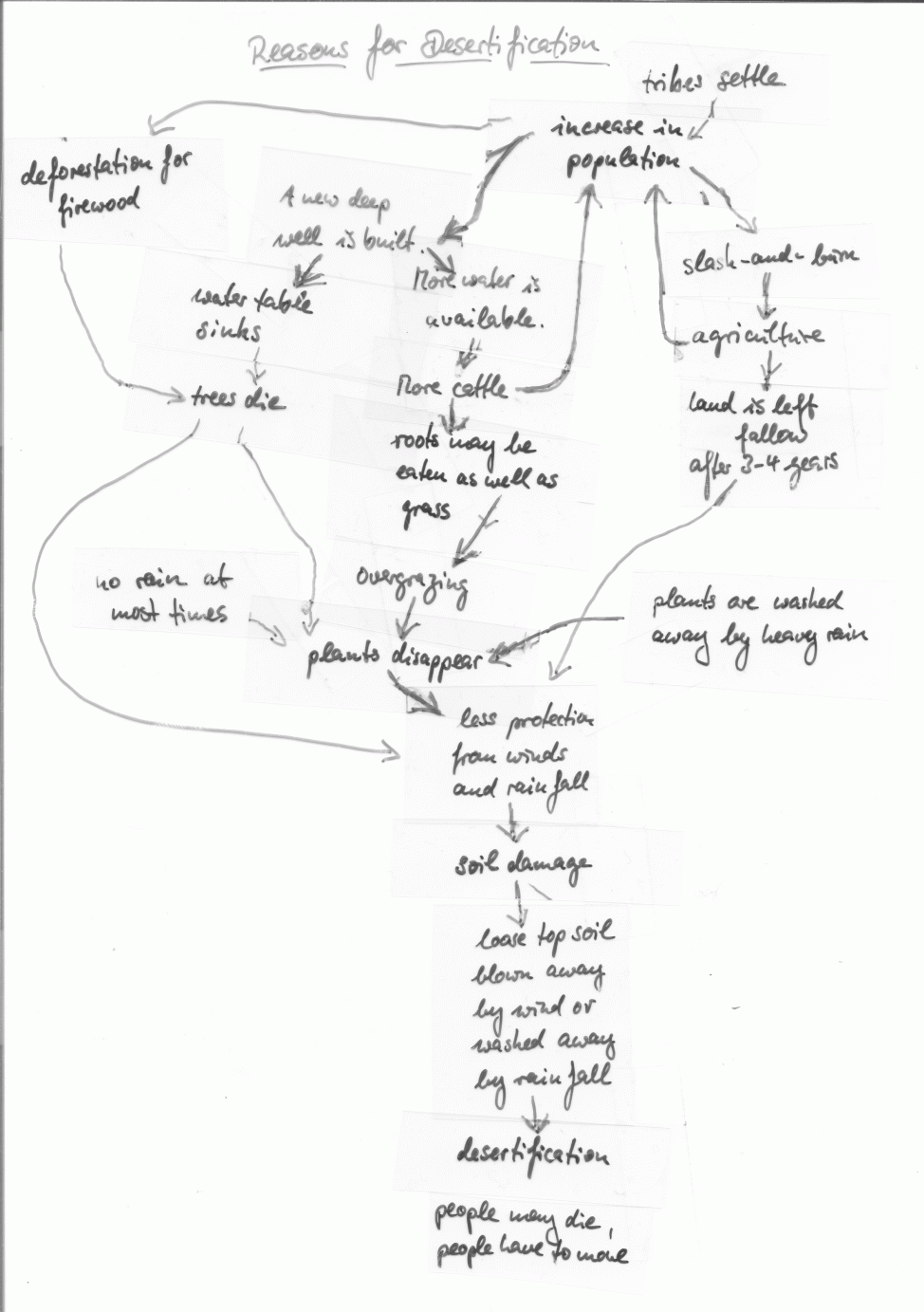 Reasons for Desertification 7cefThese flowcharts are first sketches by my Year 7 bilingual Geography classes 7ade and 7bcf in 2011: